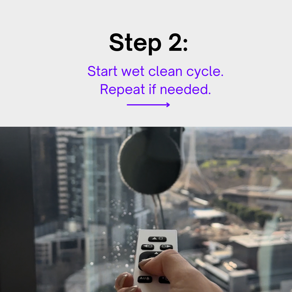 Start the wet clean cycle with just a press of a button. Repeat as needed for spotless, streak-free windows.